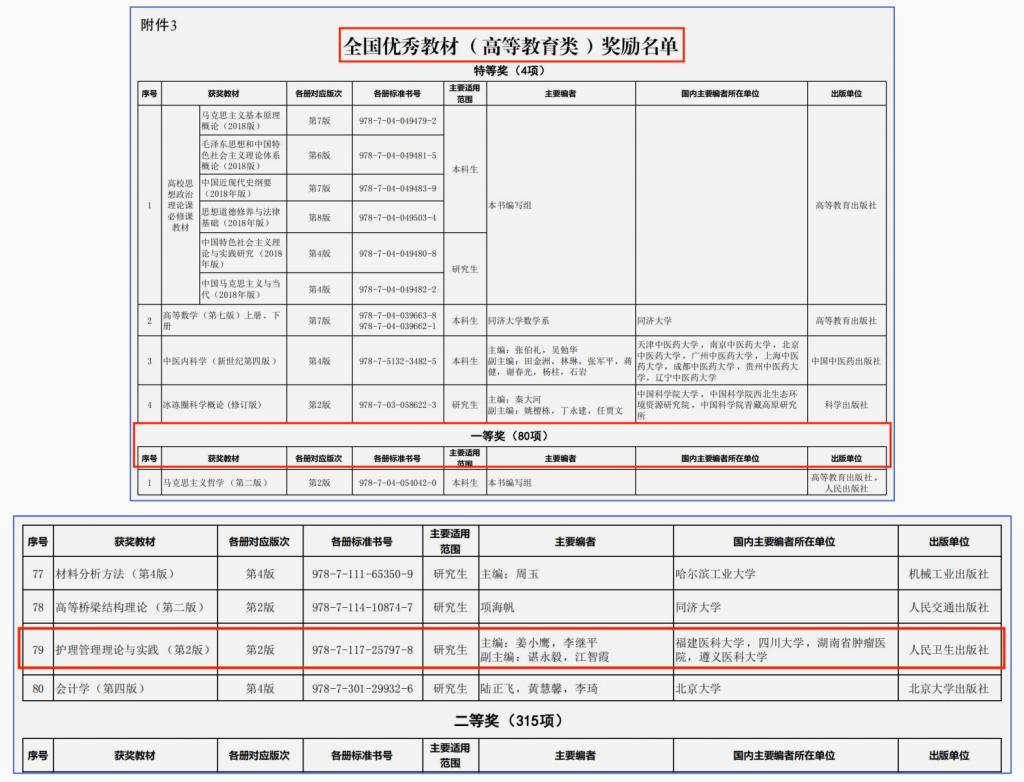 全国优秀教材一等奖(研究生教育《护理管理理论与实践》)