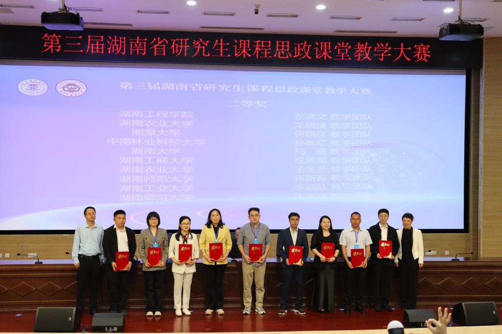 9月20日,由湖南省教育厅主办、我校承办的第三届湖南省研究生课程思政课堂教学大赛在济世楼学术报告厅圆满完成,湖南省教育厅学位管理与研究生教育处副处长刘梦清、副校长张玉芬等领导出席颁奖典礼。
