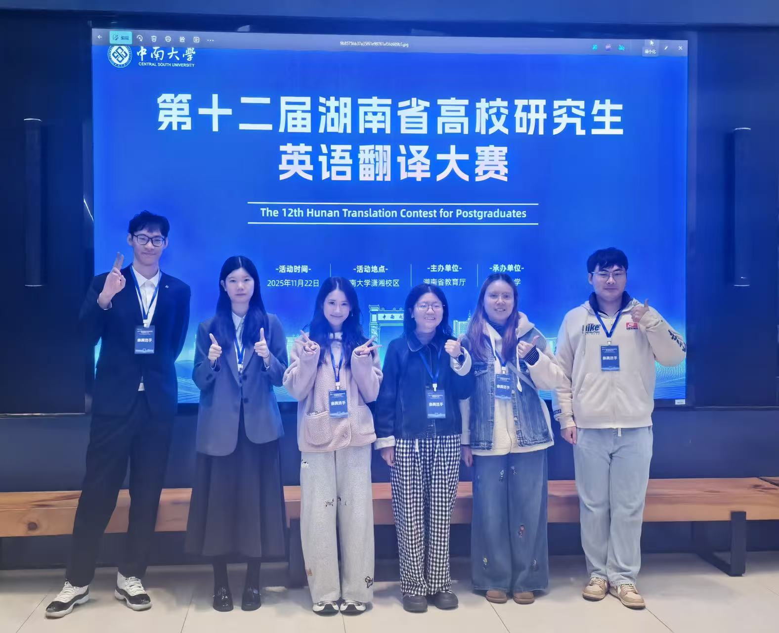 11月22日,在由湖南省教育厅主办、中南大学承办的第十二届湖南省高校研究生英语翻译大赛中,面对来自全省各高校的激烈竞争,我校选派10名硕士研究生参赛,赛前指导老师与参赛同学围绕赛事可能涉及的多个领域展开系统研究与专题训练,通过模拟实战和反复打磨,不断突破翻译难点、提升综合能力。最终,面对众多专业选手的激烈角逐,我校师生直面挑战,迎难而上,最终取得优秀成绩。其中,在笔译项目中,我校荣获二等奖一项,三等奖一项;在口译项目中,我校荣获三等奖两项。