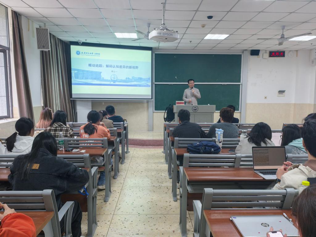 为促进心理学与前沿测评技术的交叉融合,拓展师生学术视野,10月27日,由研究生院主办、人文与管理学院承办的专题学术讲座在我校成功举行。讲座聚焦“问题性手机使用的智能评估”与“眼动追踪技术在认知研究中的应用”两大前沿主题,特邀天津师范大学心理学部副部长刘拓副教授、李士一副教授作专题报告。研究生院院长张斌教授主持讲座,研究生院、人文与管理学院相关负责人,以及心理学及相关专业师生代表参加交流。