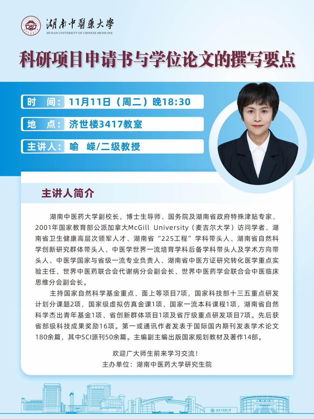 【学术讲座通知】科研项目申请书与学位论文的撰写要点